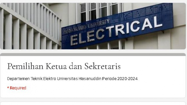 Pandemi Covid-19 tidak membuat pelaksanaan pemilu terhampat. Departemen Teknik Elektro untuk pertama kalinya menggunakan e-vote dalam pemilhan ketua dan sekretaris departemen. Pada pemilihan ini ada 4 calon ketua departemen dan 3 calon sekretaris departemen. Pemilihan ini dilakukan pada tanggal 2 juli 2020 dari jam 11.00 sampai 13.00 WITA. Pemilihan ini diikuti seluruh dosen teknik elektro yang berjumlah 32 orang. Hasil pemiihan dan perhitungan suara dilakukan pada jam 13.01. Adapun hasil pemilihan ketua departemen yaitu Dewiani sebesar 37,5% (12 suara), Wardi 28,1% (9 suara), Faizal Arya Samman 18,8% (6 suara), dan Yusran 15,6 % (5 suara). Untuk sekretaris departemen Ikhlas Kitta 46,9 (16 suara), Indar Caerah gunadin 43,8 (14 suara), dan Elyas Palantei 9,4% (3 suara). Selanjutnya dua calon dengan perolehan suara terbanyak masing-masing untuk ketua dan sekretaris departemen diusulkan ke Rektorat Universitas Hasanuddin.