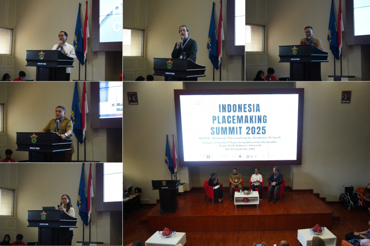 Gowa, 8 September 2025 — Fakultas Teknik Universitas Hasanuddin (Unhas) bersama Walkable Placemaking Indonesia resmi menyelenggarakan Indonesia Placemaking Summit 2025 pada 8–9 September 2025 di Kampus Fakultas Teknik Unhas, Gowa, Sulawesi Selatan. Kegiatan ini mengusung tema MAPAN: Makassar Placemaking for Academic Network, yang menjadi wadah kolaborasi lintas akademisi, pemerintah, dan praktisi internasional dalam membangun jejaring keilmuan dan pengembangan kota berbasis konsep placemaking.