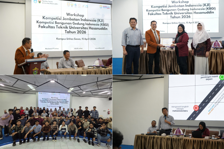 Gowa, 15 April 2026 — Fakultas Teknik Universitas Hasanuddin kembali menunjukkan komitmennya dalam meningkatkan kualitas akademik dan kompetensi mahasiswa melalui penyelenggaraan Workshop Kontes Jembatan Indonesia (KJI) dan Kontes Bangunan Gedung Indonesia (KBGI) Tahun 2026. Kegiatan ini dilaksanakan pada Rabu, 15 April 2026, bertempat di Exhibition Hall Gedung CoT Fakultas Teknik Universitas Hasanuddin.