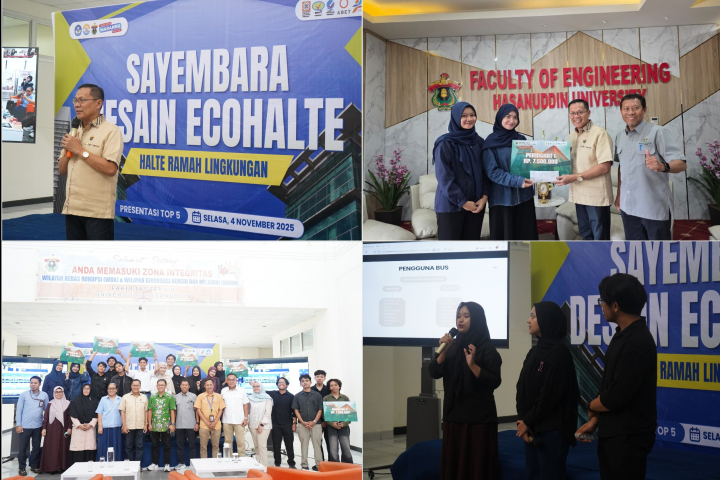 Gowa — Fakultas Teknik Universitas Hasanuddin (FT-UH) resmi mengumumkan lima tim pemenang beserta satu juara favorit dalam Sayembara Desain Eco Halte yang digelar sebagai upaya menghadirkan fasilitas halte ramah lingkungan di kawasan kampus. Penyerahan penghargaan dilaksanakan pada 4 Oktober 2025, bertempat di Gedung Classroom Fakultas Teknik Unhas, dan dihadiri oleh pimpinan fakultas, dewan juri, serta peserta sayembara.