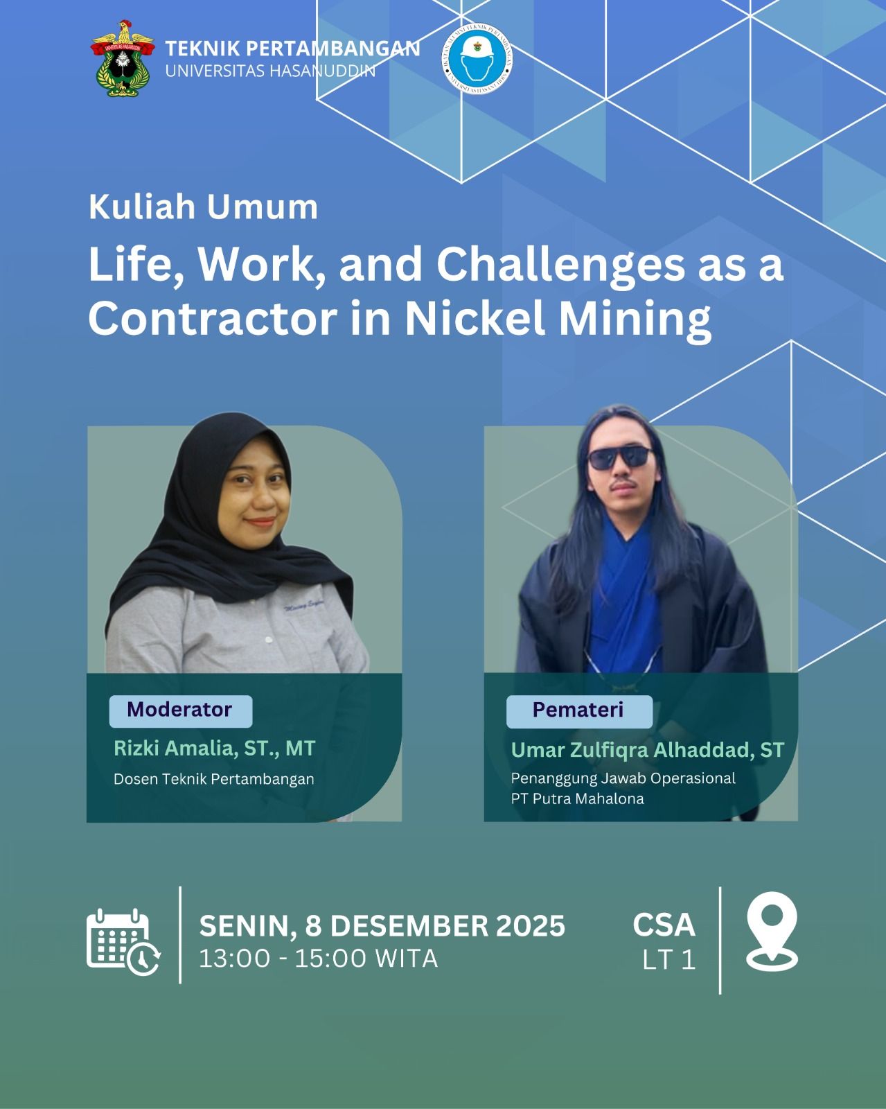 - event_available Kuliah Umum: Life, Work, and Challenges as a Contractor in Nickel Mining