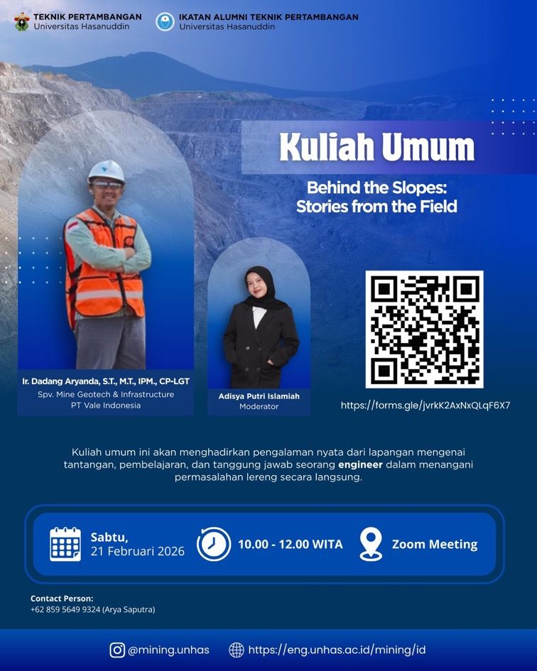 - event_available Kuliah Umum: Introduction to Slope Monitoring Performance Through an Integrated Geotechnical Monitoring